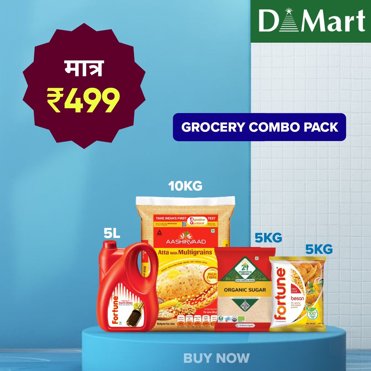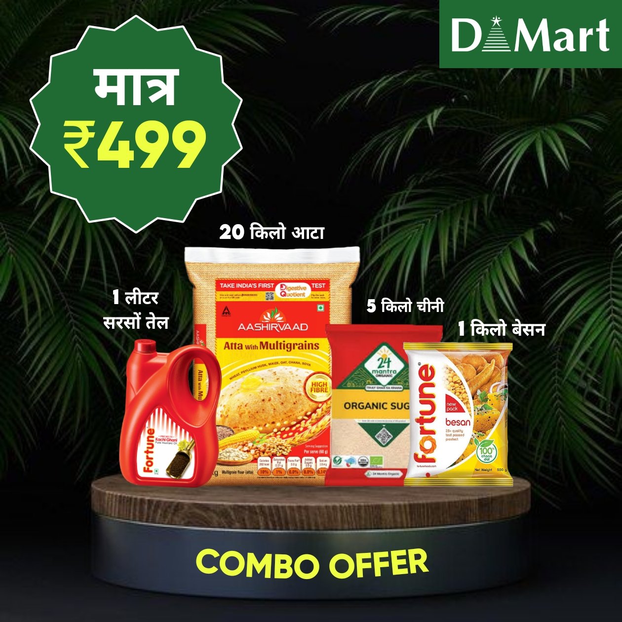 DMart Offer Today Online: Buy 20kg ashirwad atta+1 kg Besan + 5 kg sugar + 5 kg mustard oil